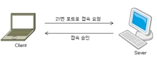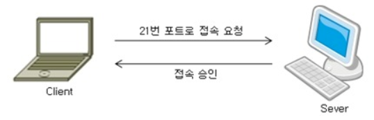 - 서버의 21번 포트로 접속을 하게 되고 서버는 승인을 한다.