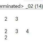 2. 123456789101112131415161718 public class _02 { public static void main(String[] args) { int n[][] = { {1}, {1,2,3}, {1}, {1,2,3,4}, {1,2}}; for(int i=0;i=0;i--) { for(int j=0;j